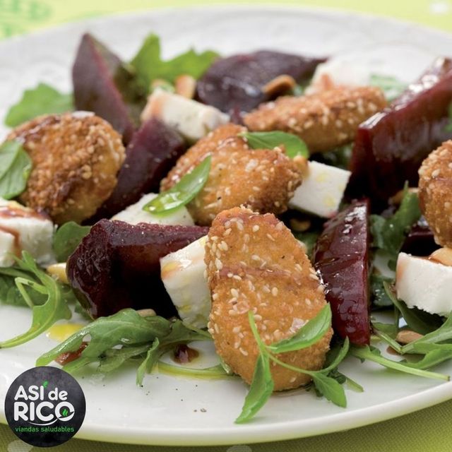Milanesa de berenjena rellena de jamón y queso c/ensalada fresca.