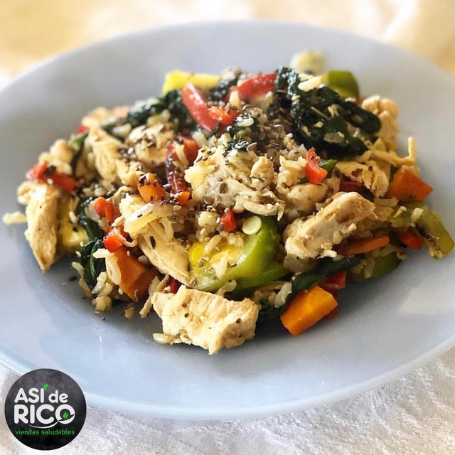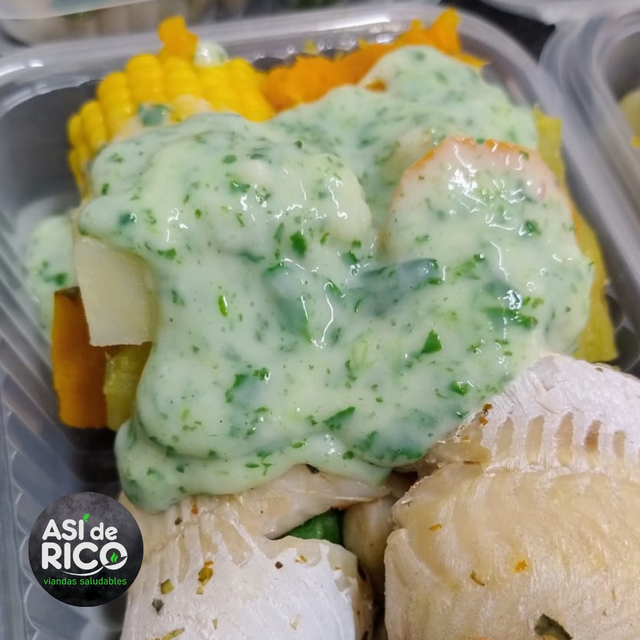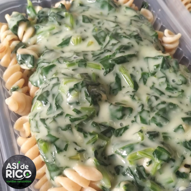Pasta integral, pollo, choclo, ajo, cilantro, rúcula.
