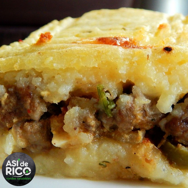 Pastel de papa relleno de carne, espinaca, queso y huevo.