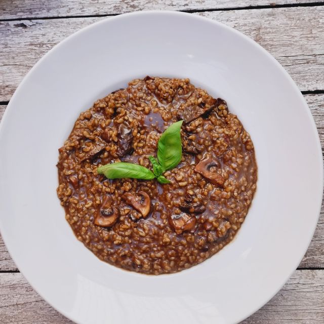 Suprema rebozada en avena con crema de champiñon y verdeo + papa, zanahoria y calabaza asada