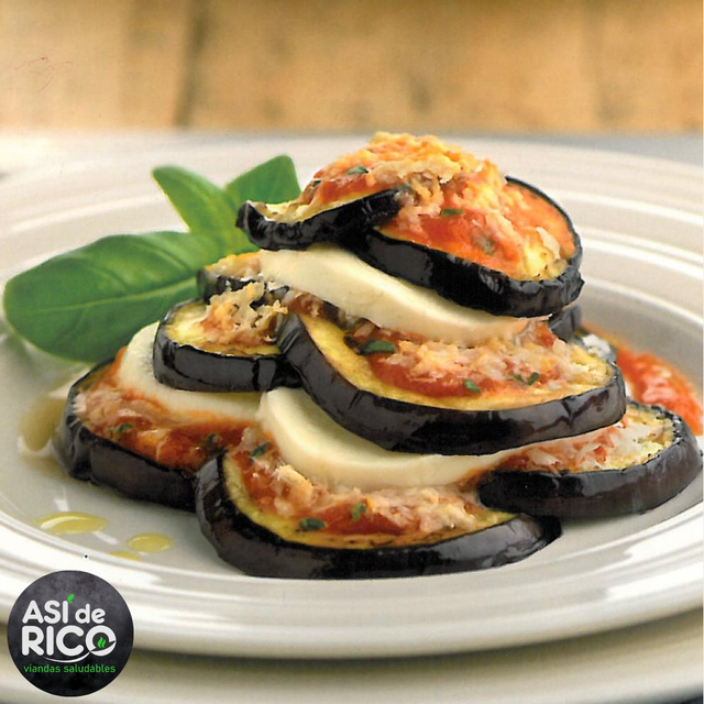 Lasagna de berenjenas c/capas de bolognesa y salsa blanca.