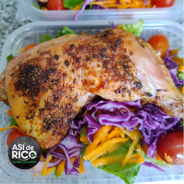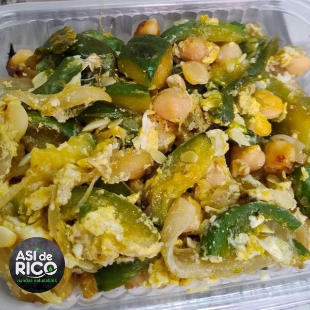 Yamani, lechuga, zucchini asado, pollo, ajo asado, huevo, zanahoria asada.