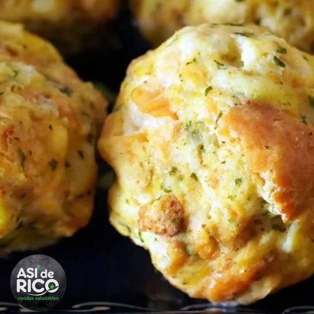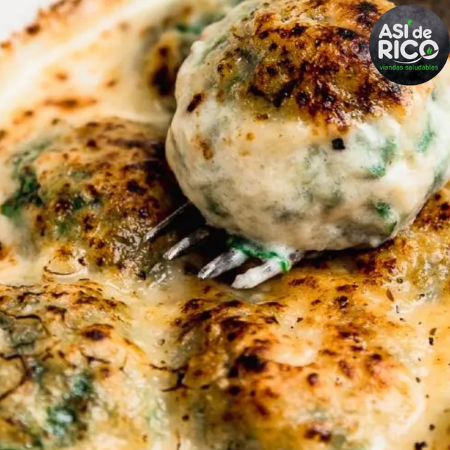 Albóndigas de pollo c/budín de zapallitos gratinado.