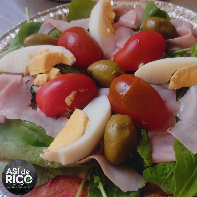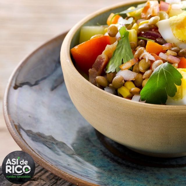 Ensalada fresca completa c/lentejas, apio, lechuga, rúcula, tomate asado, huevo