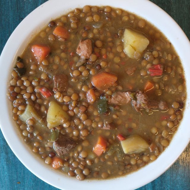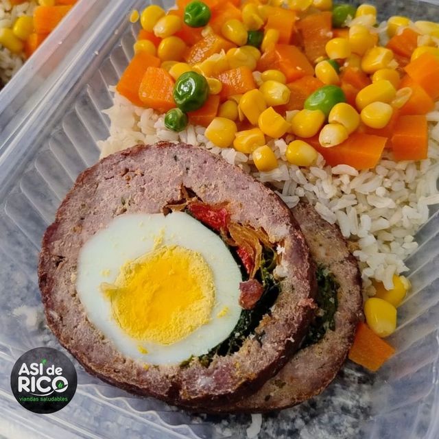 Lentejas, arroz integral, huevo, Cherry, apio, zanahoria.