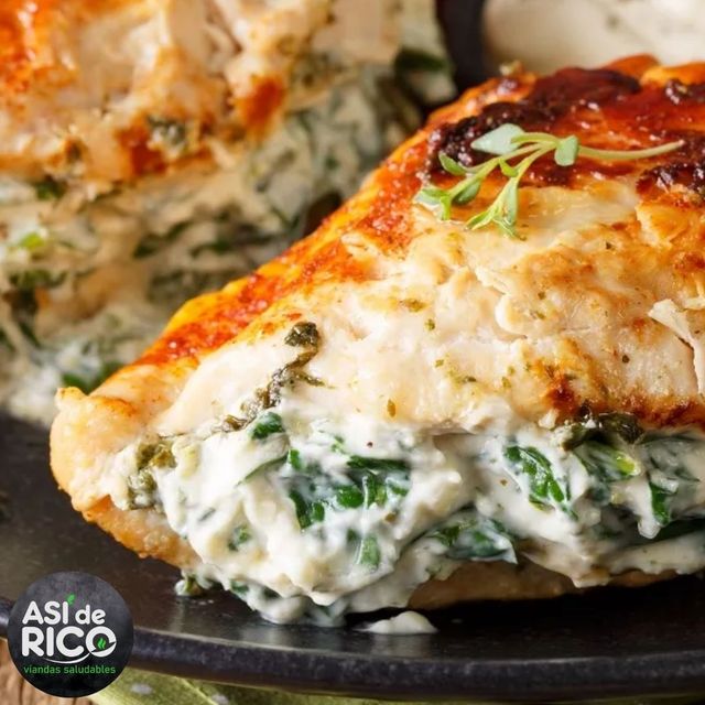 Suprema rellena de espinaca y queso c/cubos de calabaza asada