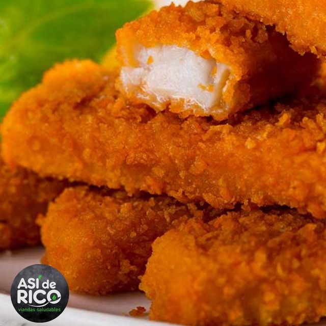 Bastones de pescado, rebozados en avena c/croquetas de verduras.