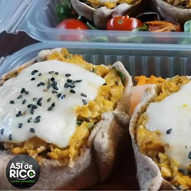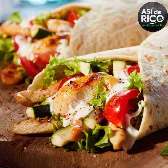 Wraps sin gluten (c/Creps de harina de garbanzos) de pollo o de carne c/vegetales frescos.
